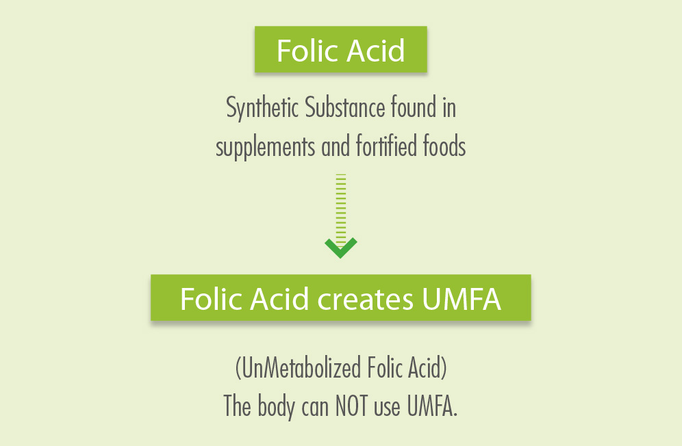 5-The threshold of ingestion of folic acid that leads to the direct appearance of UMFA in the plasma, results to be highest than 200-300 μg/daily intake. The consumption of highest dosage of synthetic folic acid results in absorption of unreduced folic acid, which may interfere with folate metabolism for a period of years.